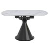 Practicality and style come together with a few turns. This table goes from a spacious stadium-shaped table, to an large-diameter round table in a matter of seconds - just a few one-handed turns of the table top. The sintered stone table is the best option for durability and design. Heat resistant, stain resistant, scratch resistant and, with the marble effect finishing, still pretty to look at! The sturdy cone-shaped pedestal base is the perfect finishing touch on this gorgeous new centrepiece to you dining room or kitchen.