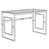 Bring style to your work-from-home set up with this gorgeous contemporary glass and metal desk. The polished finish adds a touch of luxury to your space, easily fitting in to the bedroom, living room, or any other room you choose to put it. Pair with a variety of chair styles.